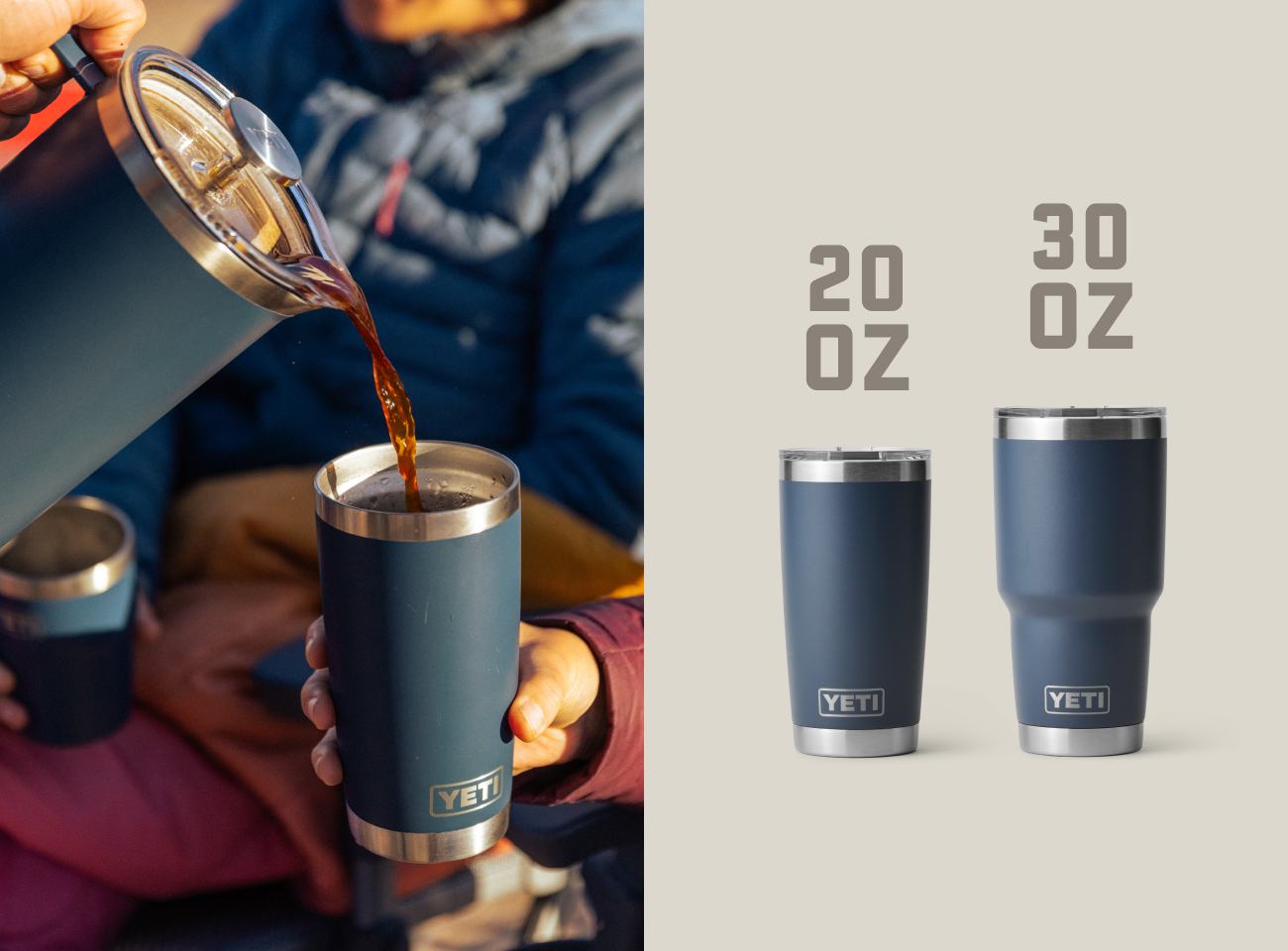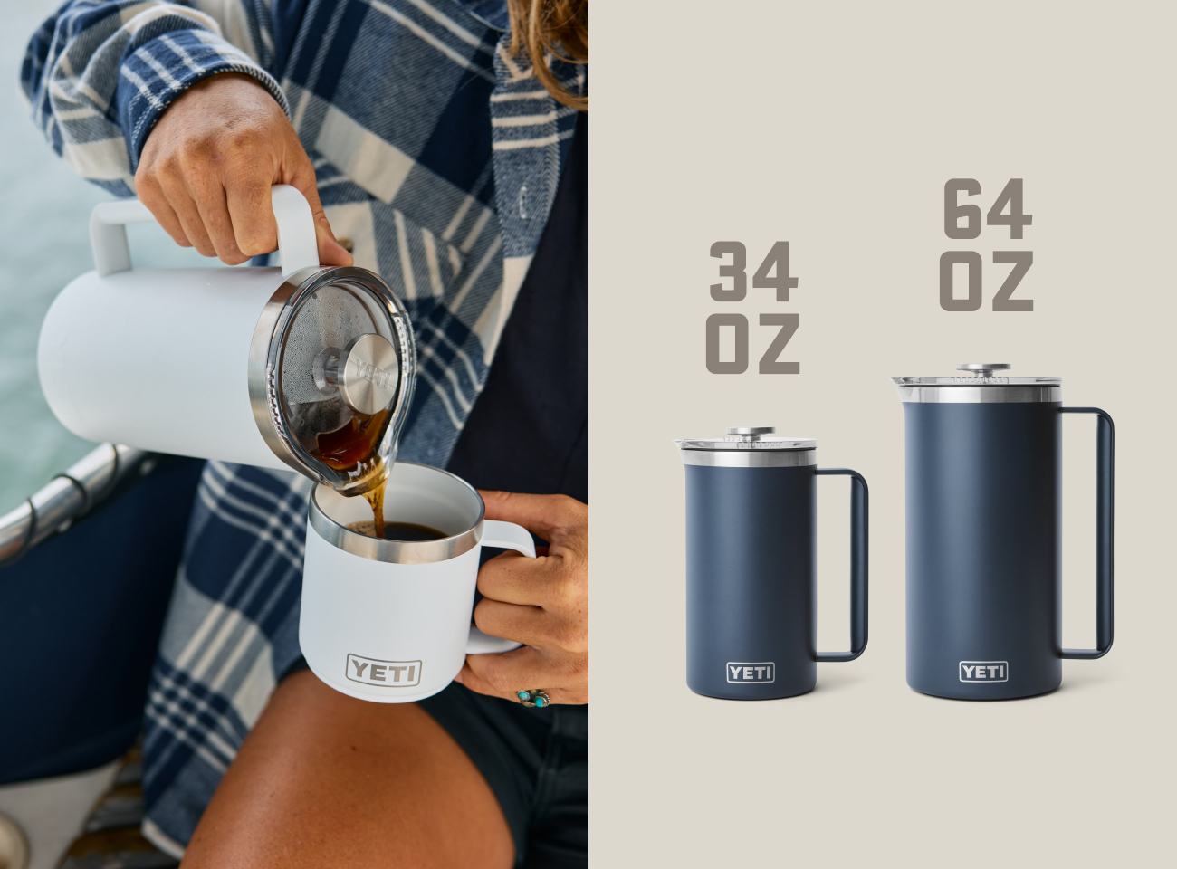 Les amateurs d’espresso apprécieront nos tasses Rambler® de 4, 6 et 8 oz (120, 180 et 240 ml). Ceux qui aiment boire leur café dans un mug de camping classique apprécieront sûrement nos mugs Rambler® de 10 et 14 oz (295 et 414 ml). Si vous êtes plutôt café à emporter, optez pour nos tasses de voyage Rambler® de 20 et 30 oz (591 et 887 ml), et dites adieu aux éclaboussures et aux débordements sur les routes accidentées et les eaux agitées. Pour les amateurs de café à préparer soi-même, notre cafetière à piston est le moyen idéal de préparer un excellent café au camping et de le garder bien au chaud pendant que vous planifiez la journée.2. OÙ AIMEZ-VOUS BOIRE VOTRE CAFÉ ?